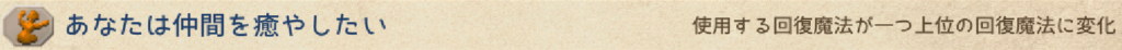 使用する回復魔法が一つ上位の魔法に変化します。