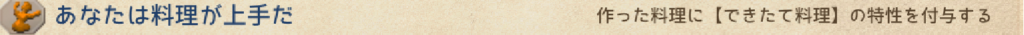 作った料理に【できたて料理】の食事特性を付与します。