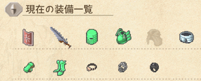 | 両手持ち | 重装備 | 盾 | 投擲 | 軽装備 | 戦術 | 回避 |