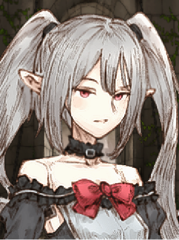 非常に長いツインテールと赤い目が特徴的。
