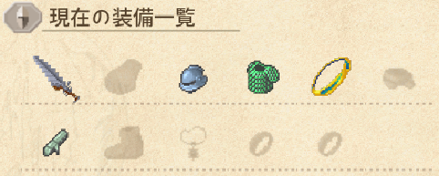 | 両手持ち | 重装備 | 盾 | 投擲 | 軽装備 | 戦術 | 射撃 | 回避 |